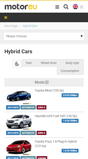 We list electric cars, Fuel Efficient Cars, fuel prices, Technical specs such as, engine output, power, fuel and coupe type, fuel economy, tire size and rims size, width, height and max. weight of cars and more.