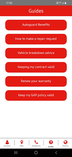 The Autoguard App contains all the contact details to help you back on the road and give you total peace of mind. Features include: