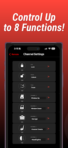 Simply connect to the AutoLoc® Keyless Entry control module via bluetooth. Quickly view features in the app like arming status or accessory status. Remotely control up to 8 functions with the push of a button. Edit and customize channel settings including name, image, mode, timed value, leave and approach activation and more. Programmable outputs include momentary, latching and timed. Plus add multiple vehicles or devices to remotely control all in one place.