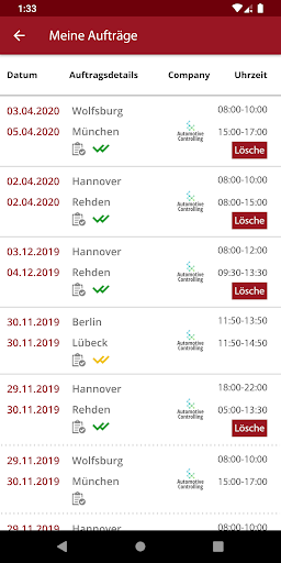 – Übersicht der Aufträge