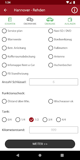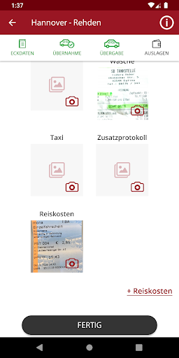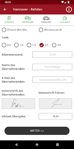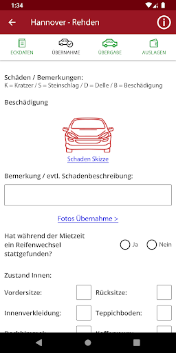 – Übernahmeprotokollierung mit Aufzeichnung des Fahrzeugzubehörs, Funktionscheck, Bilder Übernahme und Unterschriftsaufzeichung