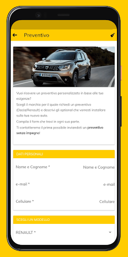 Se sei nostro cliente potrai usufruire della nostra app per ricevere un supporto innovativo. Tuttavia se non sei nostro cliente dovrai assolutamente scaricare la nostra app per cogliere al volo l’occasione di ricevere una consulenza con preventivo gratuito sui veicoli Renault Dacia con la possibilità di acquistare una auto nuova al miglior prezzo possibile!