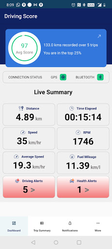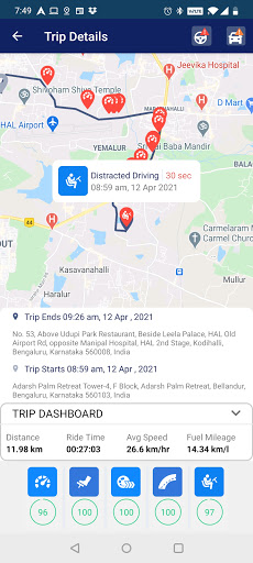 AutoPulse App features a current Trip dashboard that gives the driver a real time view of Trip Distance, Current Speed, RPM, Average Speed and Fuel Mileage. App alerts the Driver in real time for Driving Alerts such as Over-speeding, Hard Acceleration, Sudden Braking, Over-revving and Long Idling, thus helping the driver drive safer and save fuel. App alerts the driver in case of any Engine Diagnostic Trouble Code (DTC) and High Coolant Temperature. Historical Trip Summary and Alert Logs help the driver review past driving and car performance and health alert history at convenience.