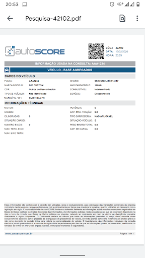 Aplicativo para realizar pesquisas veiculares e geração de laudos cautelares, utilizando o sistema AutoSCORE, apenas para empresas contratantes.