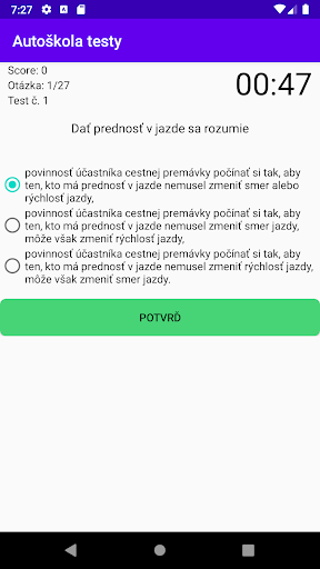 Aplikácia vám formou interaktívnych testov umožní naštudovať otázky pre skúšku v autoškole. Obsahuje 35 cvičných testov z teórie, dopravných značiek a križovatiek. Po prípadnej zmene okruhov otázok bude aplikácia aktualizovaná.
