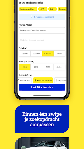Even klaar met zoeken of geen auto’s gevonden die voldoen aan je zoekopdracht? Sla je zoekopdracht eenvoudig op om later snel je zoektocht te hervatten. Je kunt ook meldingen ontvangen als er advertenties online komen die passen binnen je zoekopdracht.