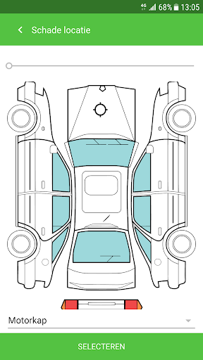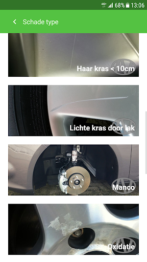 Iedere schade aan de auto voeg je toe door te klikken op de plattegrond van de auto. Daarna selecteer je de foto van de meest gelijkende schade en heb je als een vakman/vrouw de beschrijving op een achterliggend rapport toegevoegd. Zelfs herstelkosten zijn dan bekend.