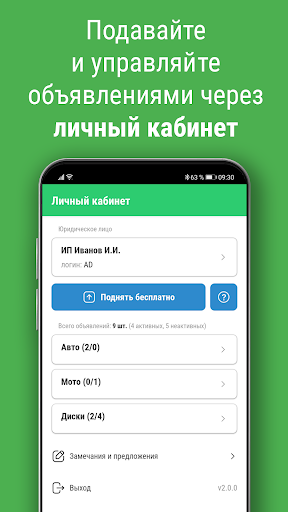 Во второй версии приложения кроме инструментов для поиска и приобретения запчастей добавлен Личный кабинет, благодаря которому вы можете разместить свои объявления и управлять ими.