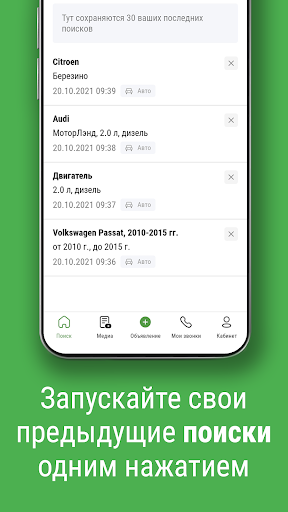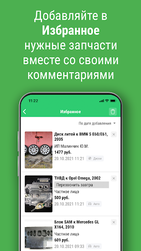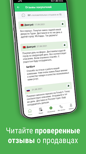• Отправляйте друзьям или знакомым информацию о найденной запчасти или продавце с помощью функции «Поделиться».