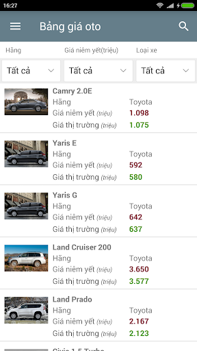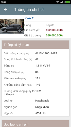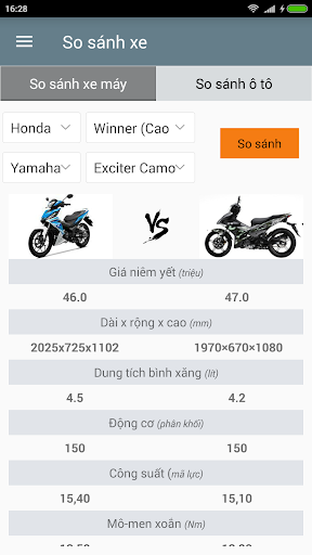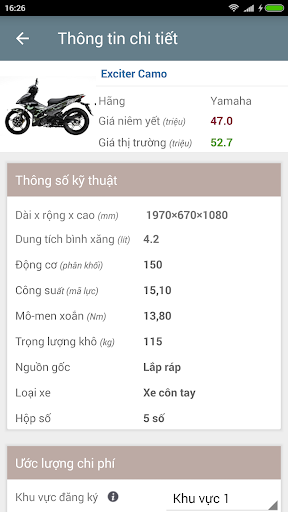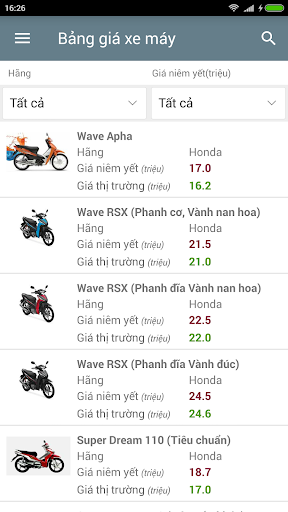 – Ứng dụng miễn phí bao gồm thông tin giá cả, thông số kỹ thuật các loại xe máy và ô tô phổ thông trên thị trường.