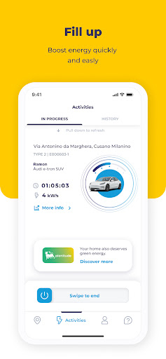 2. Monitor your electric recharges in real time: select the charging station and start recharging to get all the information you need and check the progress.