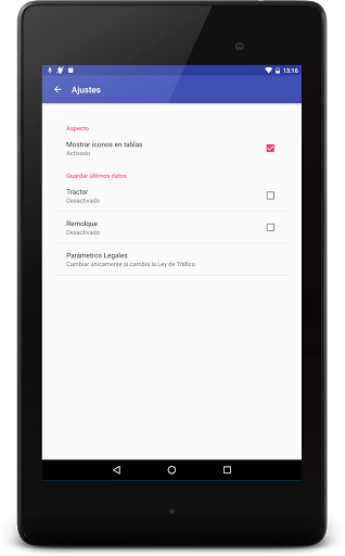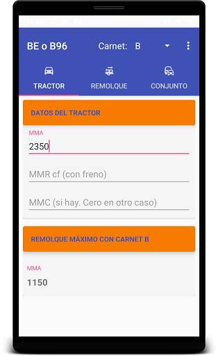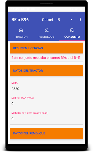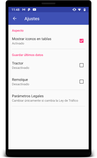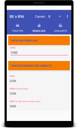 La aplicación permite recordar por separado los valores del tractor o del remolque.