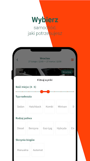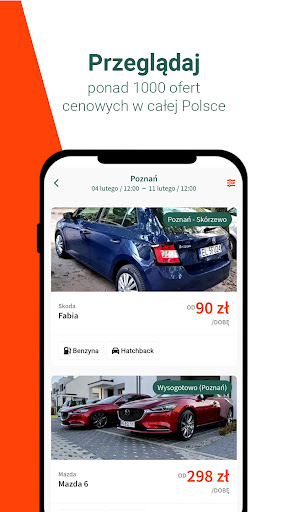 Pobierz aplikację, dzięki której zarezerwujesz auto dokładnie takie jak potrzebujesz, na dni, weekendy, tygodnie, miesiące czy rok. W ofercie znajdziesz ponad 1000 samochodów różnych klas i rozmiarów w całej Polsce (m.in. samochody osobowe, dostawcze, elektryczne, kombi).