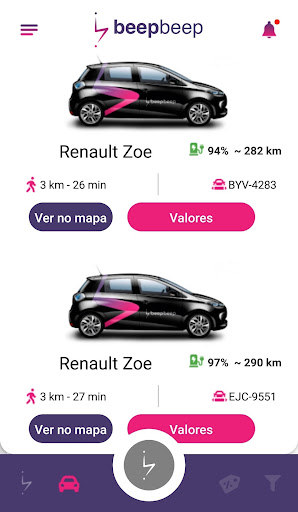 Procure no mapa, selecione o carro e o plano de minutos, então reserve e terá até 15 min para chegar até o carro.