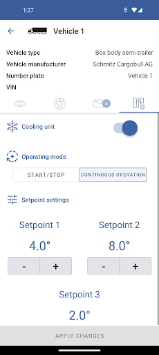 Remote chiller control: Full control over the chiller thanks to mobile setpoint adjustment, operation mode selection, and monitoring of interior temperatures.