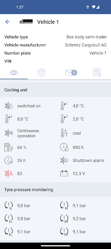 With the beUpToDate app, you have your fleet at once glance at all times. In the mobile view of the portal, you get important insights about your fleet, such as the position, tire pressure, wear and load per vehicle. Messages and alarms that have been preconfigured in the TrailerConnect portal are sent directly to your smartphone as an SMS or in the message history of the app. This allows you to react quickly to critical events and make your fleet management more efficient.