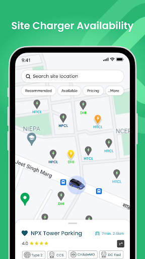 Using this app, the EV user of the CPO can get the nearby sites, list of sites, charger details at a site,