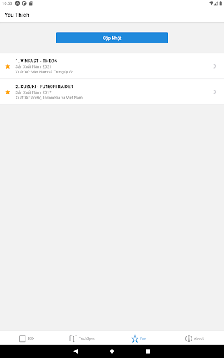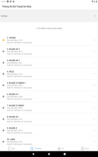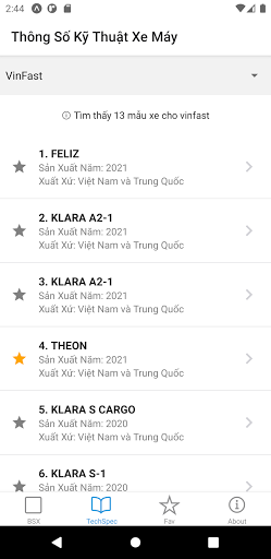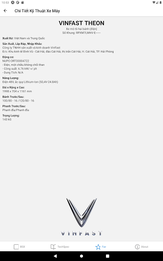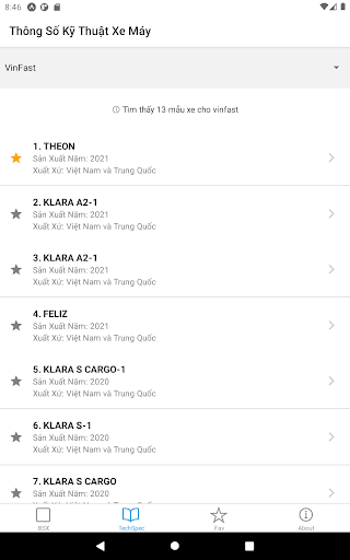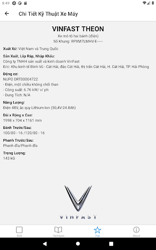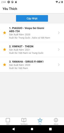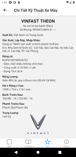 – Tra cứu thông số kỹ thuật cho xe máy các hãng thông dụng ở Việt Nam như năm sản xuất, xuất xứ, cty lắp ráp/sản xuất, loại nhiên liệu, động cơ xe, v/v.