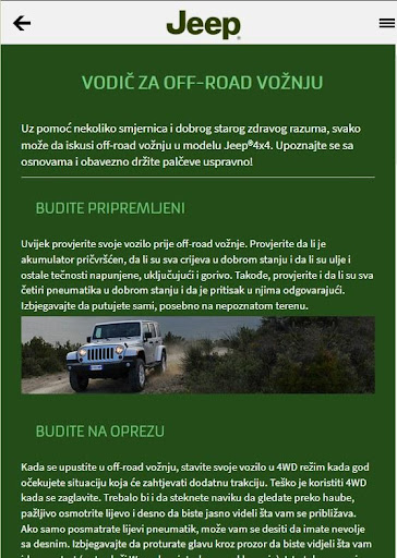 Upoznajte JEEP vozila, saznajte više o istoriji ovog svjetski poznatog brenda u auto industriji, pročitajte praktične savjete o terenskoj vožnji i 4×4 pogonu, pratite novosti i pronađite informacije o održavanju ovih vozila.