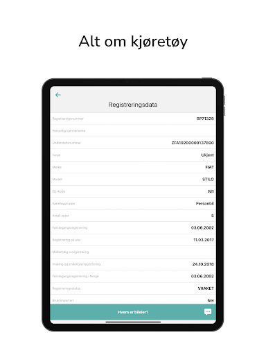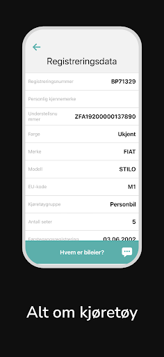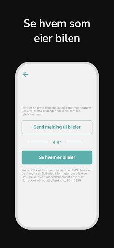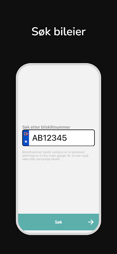 Appen gjør det enkelt og rask å finne eier til kjøretøy. Dette er betalt funksjon.