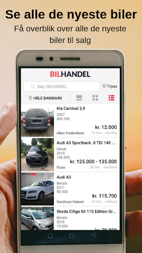 BilHandel samler brugte biler fra hele Danmark både i en lækker applikation og på et website. Dette er for dig, som gerne vil købe eller sælge biler men også biludstyr. Vi giver dig det helt store overblik, og hjælper dig til en sikker handel. Søg efter biler i dit lokalområde, eller i hele landet – det er alt sammen helt op til dig.