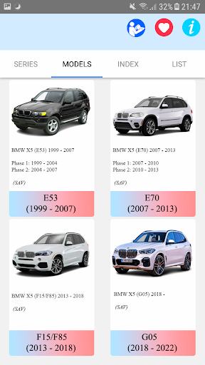 X series : E84, E83, E53, E70, E71, F48, F39, F15,