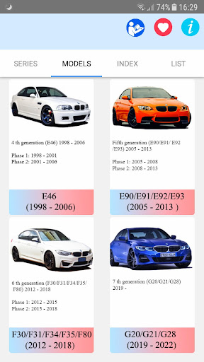 This application contains all the electrical wiring diagrams and the location of electronic components (ECU, Fuse Box..) for BMW cars from 1998 to 2024.