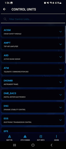 • On the mobile side, BIMMERUTILITY’s mobile application serves as the first-in-class coding app. It empowers users to code any car parameter and edit FA or VO code modules, all based on the latest data used by professional coders.