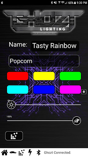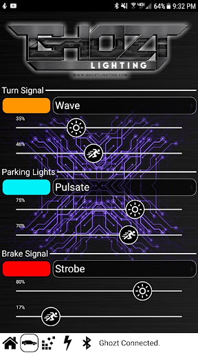 This application is used to control our BlueGhozt LED controller modules. These modules provide full color chasing LED lighting as well as sequential and animated signaling for automotive applications.