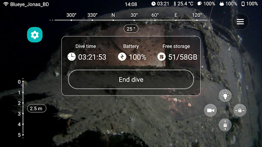 The Blueye app lets you control your Pioneer underwater drone from your Android. You can either use the touch interface to control the drone, or you can connect a wireless game controller.