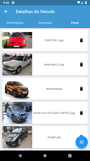 – Opcionais do veículo são cadastrados diretamente no app, sem a necessidade de intervenção do sistema Web.