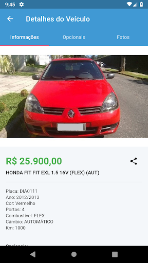 – Nos Detalhes do veículo é possível ver uma listagem de todas as fotos, os detalhes do veículo, observações e opcionais.