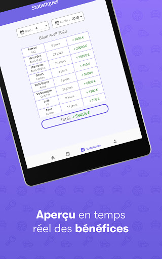 Notre application de gestion de véhicules de location simplifie le processus de location de voitures avec la création des contrats en PDF, un calendrier pour avoir un aperçu en temps réels de la disponibilité des véhicules et des statistiques pour suivre le bénéfice mensuel de chaque voiture. Optimisez votre business avec notre application facile à utiliser et pratique. Téléchargez-la dès maintenant !