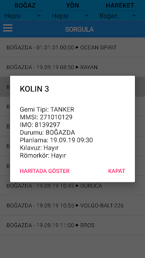 – Boğaz Giriş Planlamasındaki gemilerin canlı harita üzerinden görüntülenmesi