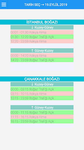 – Boğazların Günlük Trafik Askıya alınma ve açılma saatleri, yönleri