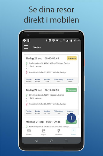 I appen får du koll på fordonets position, överblick av fordonets resor och på ett smidigt sätt göra ändringar på genomförd resa.