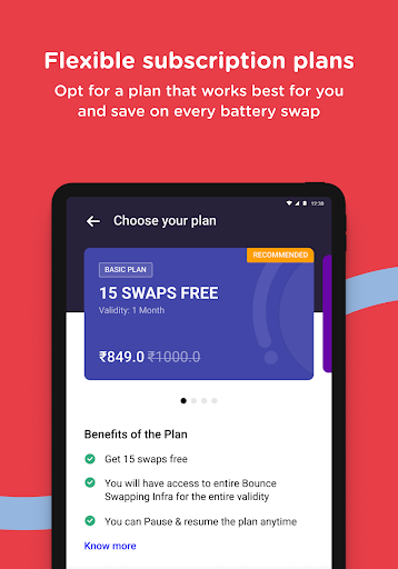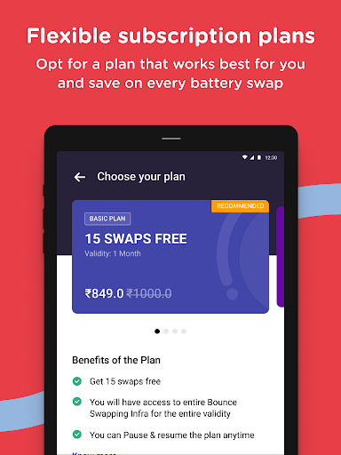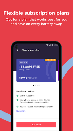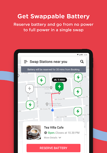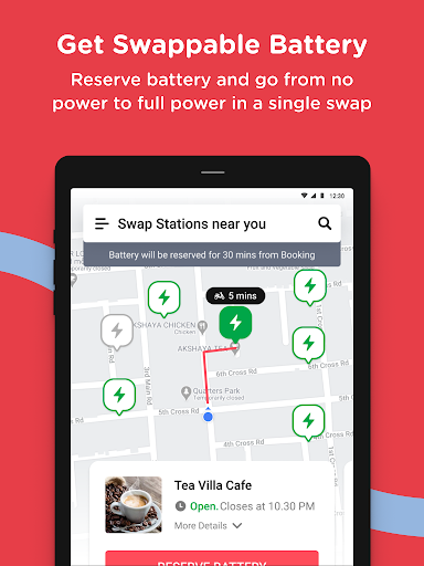 All Bounce swap stations are integrated into this app, which constantly tracks your electric scooter’s battery charge status. The app will alert you when your battery’s low, and all you’ll have to do is track the nearest swap station to swap. Or plug into your portable charger and track the charging remotely.