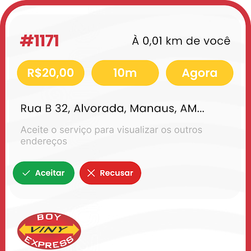 Boy Viny Express – Motoboy Aplicativo destinado à profissionais que prestam serviços de entrega. Este aplicativo precisa capturar sua localização em segundo plano; para que você seja localizado pelo sistema quando houver serviços próximo de você.
