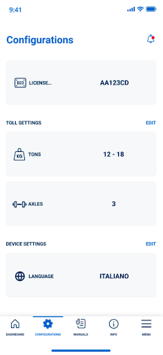 The truck driver can easily and quickly update axles and the weight category. Thanks to the push notification system (s)he will receive real-time notifications about each update made using the APP or the Tollbox.
