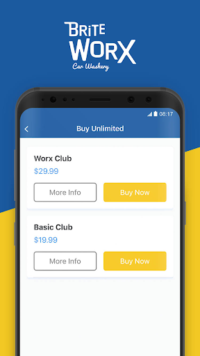 Download the Brite WorX Car Washery app to redeem your free car wash. Join our Always Clean Club and manage your account through our app. You can manage your Always Clean Club account through our app, buy individual washes through the app, and also send washes to friends and family.