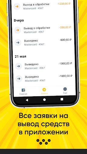Заработанные деньги можно выводить в любое время суток. Все заявки на вывод обрабатываются автоматически и сохраняются в истории приложения. Установив приложение, не придется ждать, пока бухгалтерия рассчитает зарплату. Вывод денег не привязан к определенному расчетному периоду, как в других компаниях, а расчет не содержит скрытых сборов и дополнительных платежей. Все расчеты прозрачны и их можно отследить на смартфоне в личном кабинете.