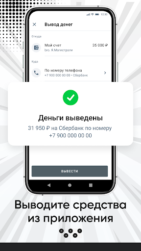 Заработанные деньги можно выводить в любое время суток. Все заявки на вывод обрабатываются автоматически и сохраняются в приложении.