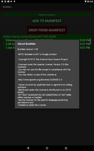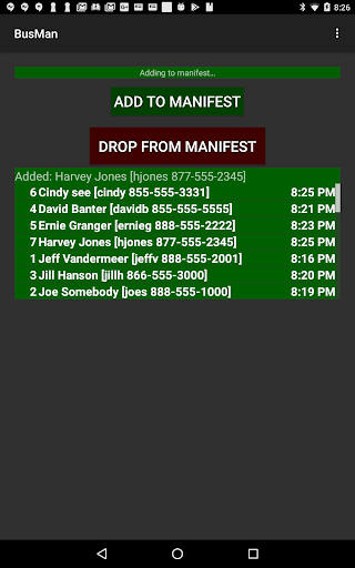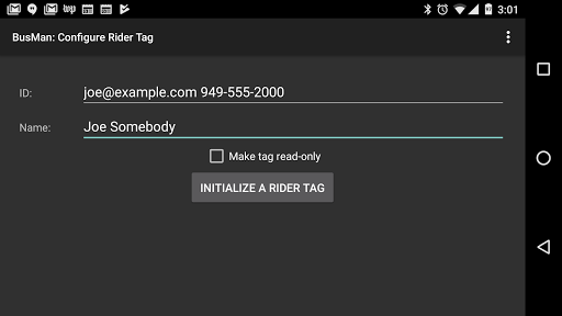 BusMan is a rider manifest manager that’s based on NFC (Near Field Communications RFID) tags. Let’s say you have shuttle bus route with one round trip per day, and a limited number of riders, not all of whom ride every day. Issue them an inexpensive NFC tag (the app supports NTAG213 and similar) encoded with their name and phone number. When they board and present their badge on leg 1 of the route, the app adds them to the manifest. When they board for the return leg of the trip, the rider is removed from the manifest. When it’s time to depart, the driver can quickly see who, if anyone, has failed to board.