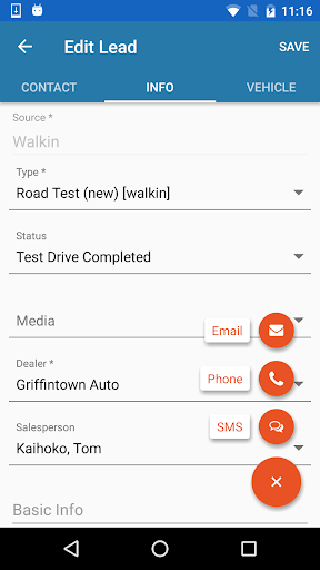 The BWebAuto Lead Manager mobile application allows sales professionals to create and manage leads directly from the sales floor.