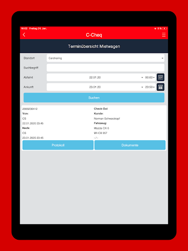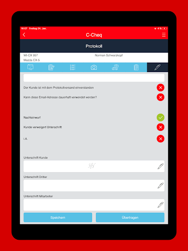 Digitale Protokollierung der Übergabe und Rücknahme von Mietfahrzeugen