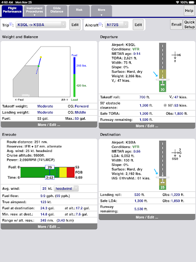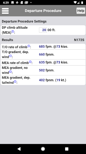 C172 Performance computes all the useful performance numbers for flight planning for Cessna model 172 aircraft. It includes calculations for takeoff, landing, climb, cruise, descent, instrument procedures as well as emergencies. It also includes an interactive hold calculator, a risk analysis tool, and an emergency glide distance calculator that handles head and tailwinds.