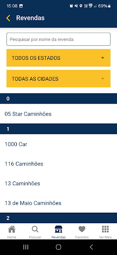 Procurar por qualquer revenda de caminhão cadastrada do Brasil, e ver informações detalhadas sobre cada uma, bem como entrar em contato ou colocar o endereço no GPS do celular.