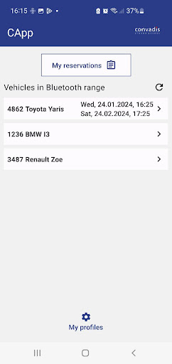 CApp allows you to access participating cars by using your smartphone! Follow features are provided: