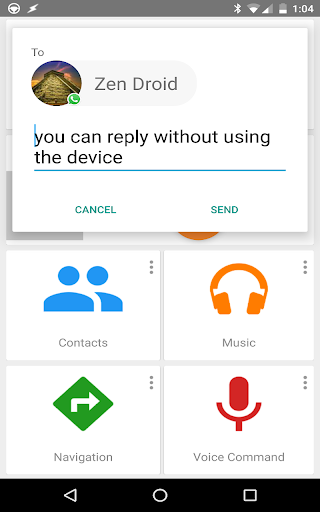 Includes Whatsapp, Telegram and facebook messenger reply integration, you can listen to incoming messages and reply without touching the device, start/stop the app using Bluetooth and return from any app to the specially-designed Car Dashdroid homescreen with a press of the Home button while connected (see settings).