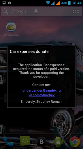 After installing this app, the main application “Car expenses” will get the status of paid version and ads will be disabled.